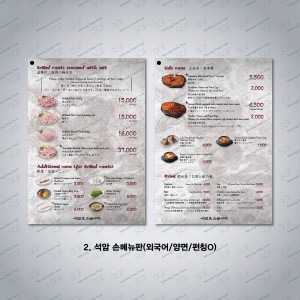 손메뉴판(A4)-아트180g+책받침코팅150mic > 메뉴판