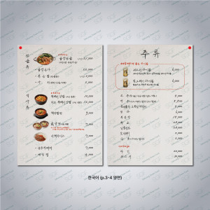 손메뉴판(A4)-갱지+책받침코팅(150mic) 요약정보 및 구매