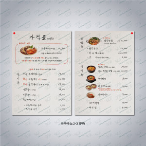 손메뉴판(A4)-갱지+책받침코팅(150mic) > 메뉴판