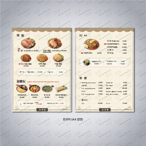 손메뉴판(A4)-아트180g+책받침코팅(150mic) > 메뉴판